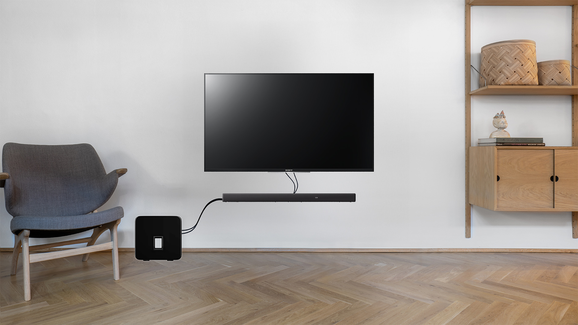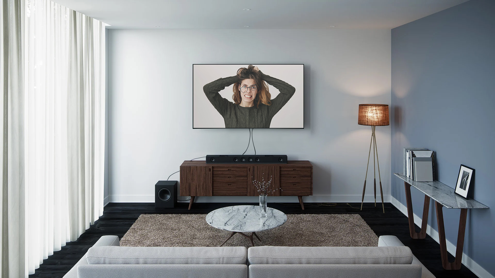 Impressive stereo sound with a wide soundstage. Slim design that fits perfectly with almost any TV. Effective room correction. Excellent sound quality, even at low volume. No support for Dolby Atmos. No connection for external subwoofer.