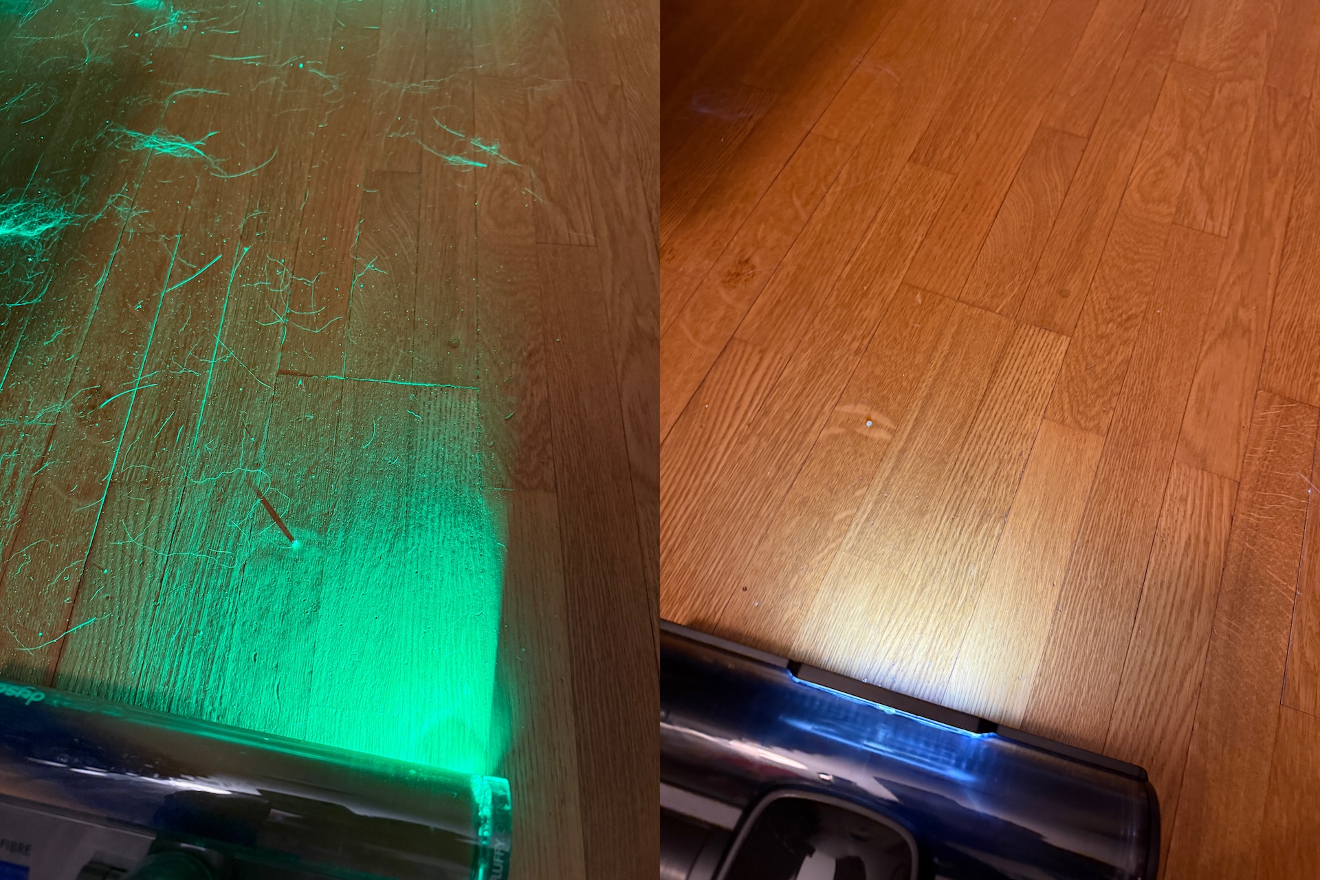 The motor nozzle works really well on hard floors, where our revealing laser barely found an overlooked dust particle. The built-in light is absolutely useless at showing the dirt. However, the nozzle does have a problem with getting stuck in our smooth-woven carpets, a problem that so many other vacuum cleaners we’ve tested also have. On such occasions, we wish it was possible to switch off the rotating brush. On the positive side, long hairs don’t get caught in the brush, which both long-haired people and pet owners will be happy about. The dust nozzle and crevice tool are very low-tech and do their job as expected.