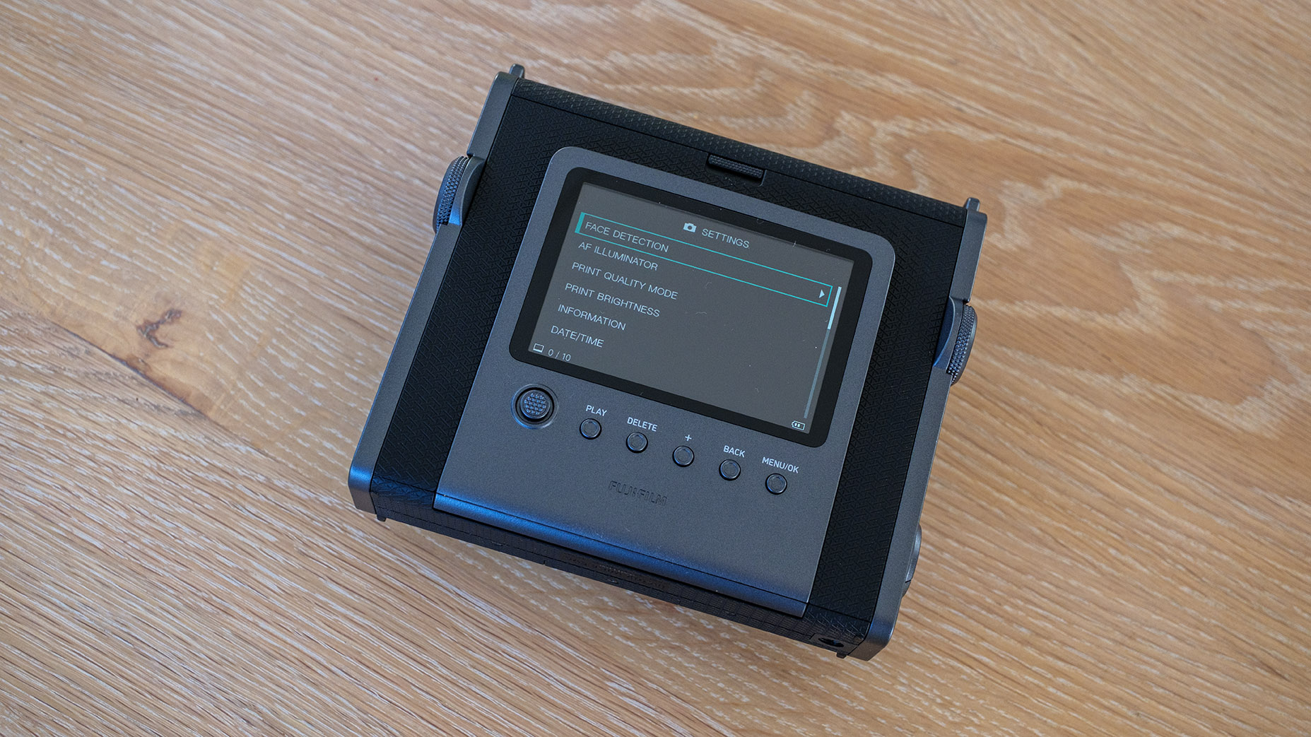 The Instax WIDE Evo is a hybrid digital camera and printer, and images are stored in the camera’s internal memory or on a microSD card. The images can be printed on Instax Wide Film, which is 108 x 86 mm in size. The actual image area is 99 x 62 mm, which is 115 per cent larger than regular Instax film, and with a 16 megapixel image chip behind a 16 mm wide angle, the image quality is quite good.