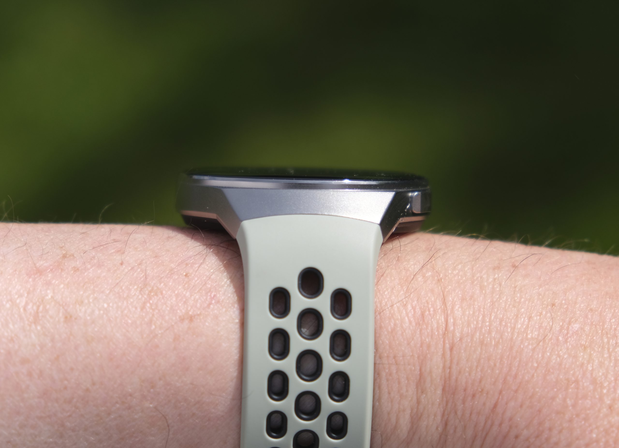 All functions are operated from the touch screen and the two buttons on the sides. A rotating ring – bezel – had made it even easier to operate. Sweaty fingers may struggle to scroll around the screen, here a rotating bezel or crown (as on the Apple Watch) could further increase usability.