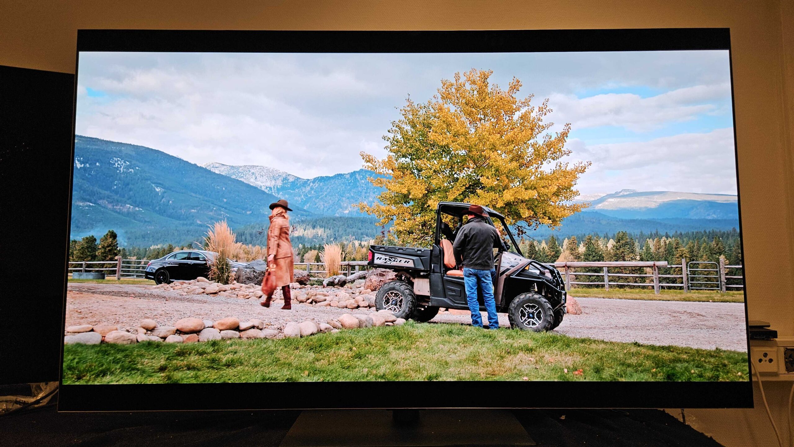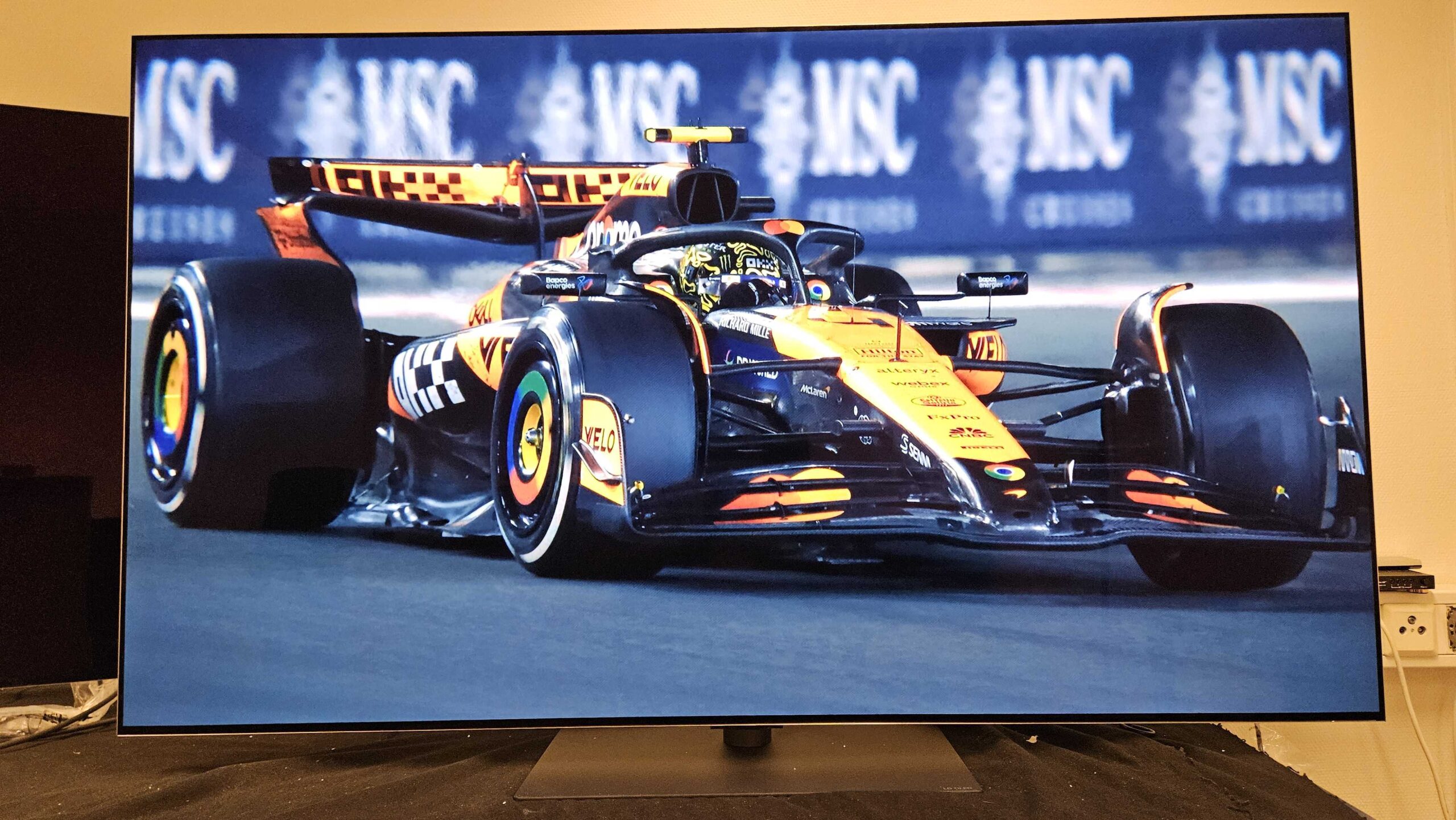 When testing with familiar video material, it’s easy to see that the LG panel benefits from the extra brightness in demanding HDR scenes. Fast-paced scenes from the F1 series Drive to Survive are served up with even more punch in the highlight effects. The sunlight sparkles and the brake discs glow. The sparks as the chassis scrapes the tarmac feel even more alive. But the colours of the decorated formula cars have also become brighter than before. The reds in particular seem more intense, but the blues and greens have also become more pronounced.