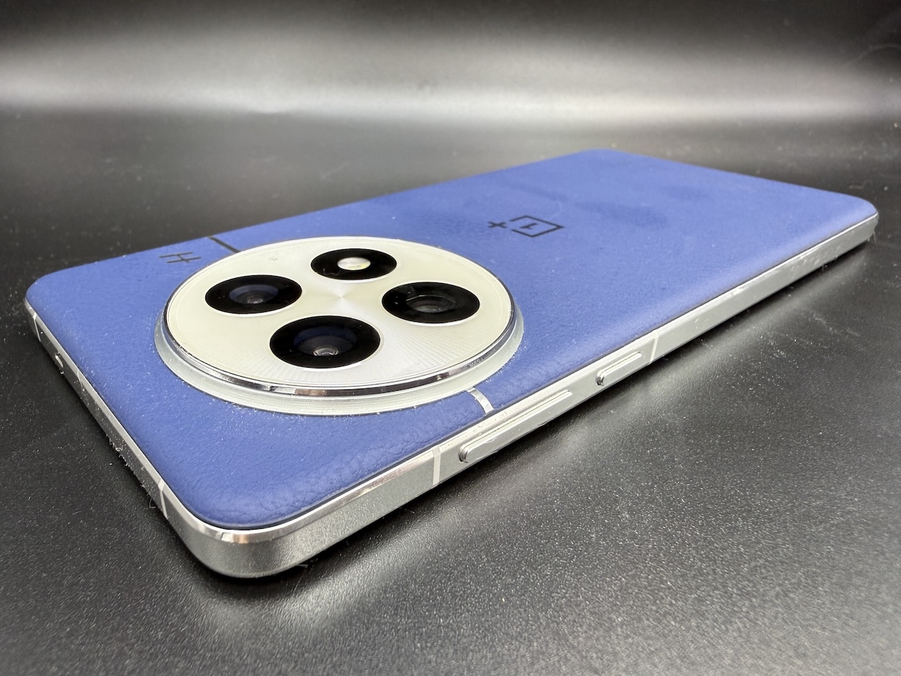 Say what you will about the design of the Oneplus 12 camera module, but it certainly wasn’t pretty. Fortunately, we don’t have to worry about trying to merge it with the edge. Instead, it’s a distinct island with a thoughtful placement that makes it almost elegant. The same can be said for this year’s sober colour choice. You can choose between a black with a wood texture, a smooth glass back in white or a blue in microfibre-based vegan leather. Luckily, we got the blue version, which was our favourite.