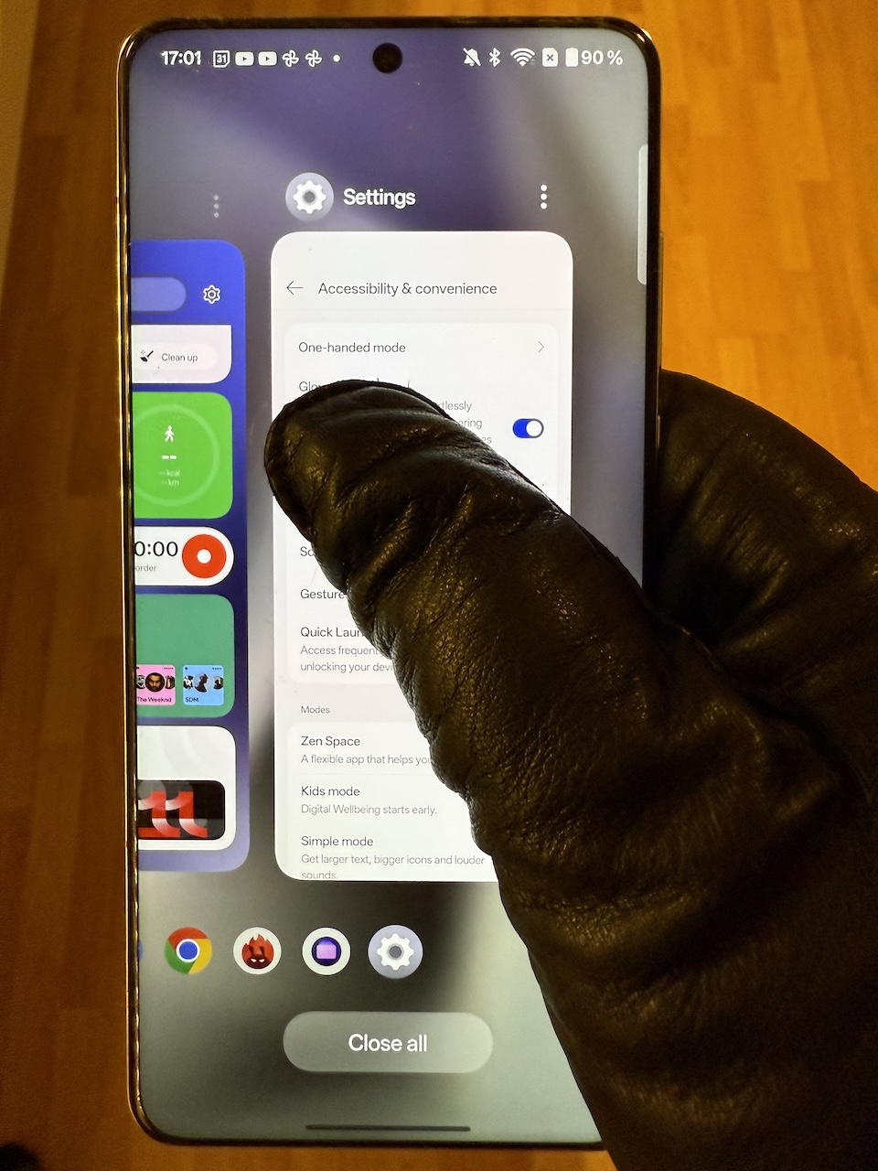 On the other hand, Oneplus has introduced a number of subtleties behind the scenes. So-called RadiantView should make reading in sunlight even easier and reading in low light should be less strenuous. The popular AquaTouch feature, which allows you to use the screen even when wet, has been further improved. But even more remarkable is the new Glove Mode, which allows you to use the touchscreen with both mittens and lambskin gloves. We tried it with the latter and it actually worked. It’s a much appreciated feature in the Nordic climate!