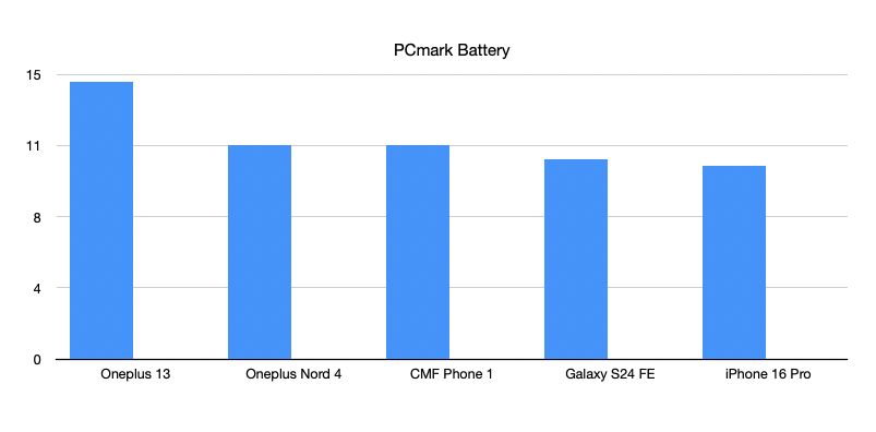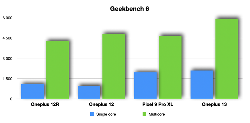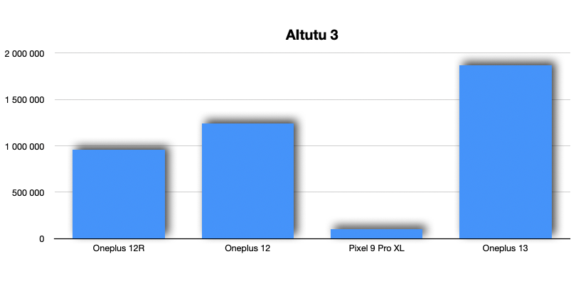 Last year we complained that the Oneplus 12 wasn’t noticeably faster than its predecessor, but this year it’s not the case. Thanks to the Snapdragon 8 Elite processor, the Oneplus 13 is a real runner. It easily beats most of the Android phones we tested last year, with the exception of the monster Asus ROG Phone 9 Pro Edition. However, it is several thousand dollars more expensive. Compared to the Oneplus 12, it’s typically 30 per cent faster and in some cases up to 100 per cent. But it was when it came to AI performance that our jaws really dropped. The Oneplus 13 pulls away from the competition in spectacular fashion. In the AItutu test, it was 35 per cent faster than the runner-up, the Samsung Galaxy Z Fold 6! Thanks to the extra large battery, it also has an extremely long battery life. 14.5 hours of constant use is actually the longest we’ve measured in years!