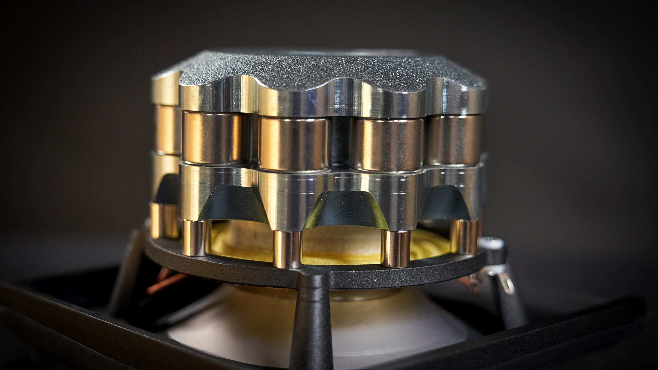 Another Raidho signature is titanium voice coils. Titanium is actually a poorer electrical conductor than copper and aluminium, which has to be compensated for with a larger cross-section of the coil wire. But the advantage is that titanium is virtually unaffected by magnetism, which means the coil can move freely through the magnetic field. And the result? Better dynamics and speed.