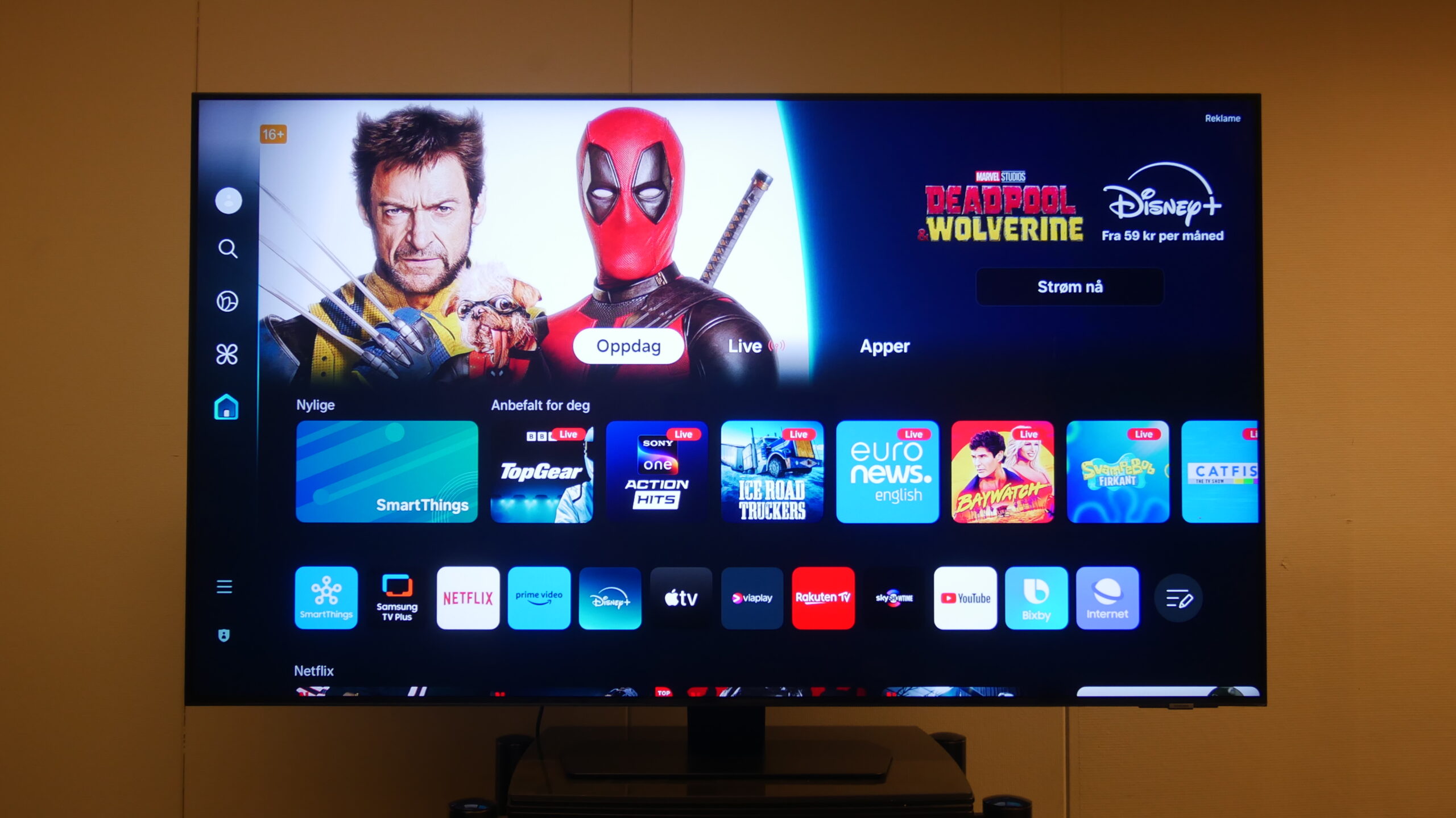 With a TV as slim as this one, there aren’t high expectations for the sound. Samsung has placed some speakers on the sides and below the screen, including top speakers for Dolby Atmos, but it’s not a great sound solution with extra dedicated woofers or the like. The sound is mostly fine, with good clarity in the vocal range, but generally quite thin. It quickly becomes clear that it’s no match for the powerful image.