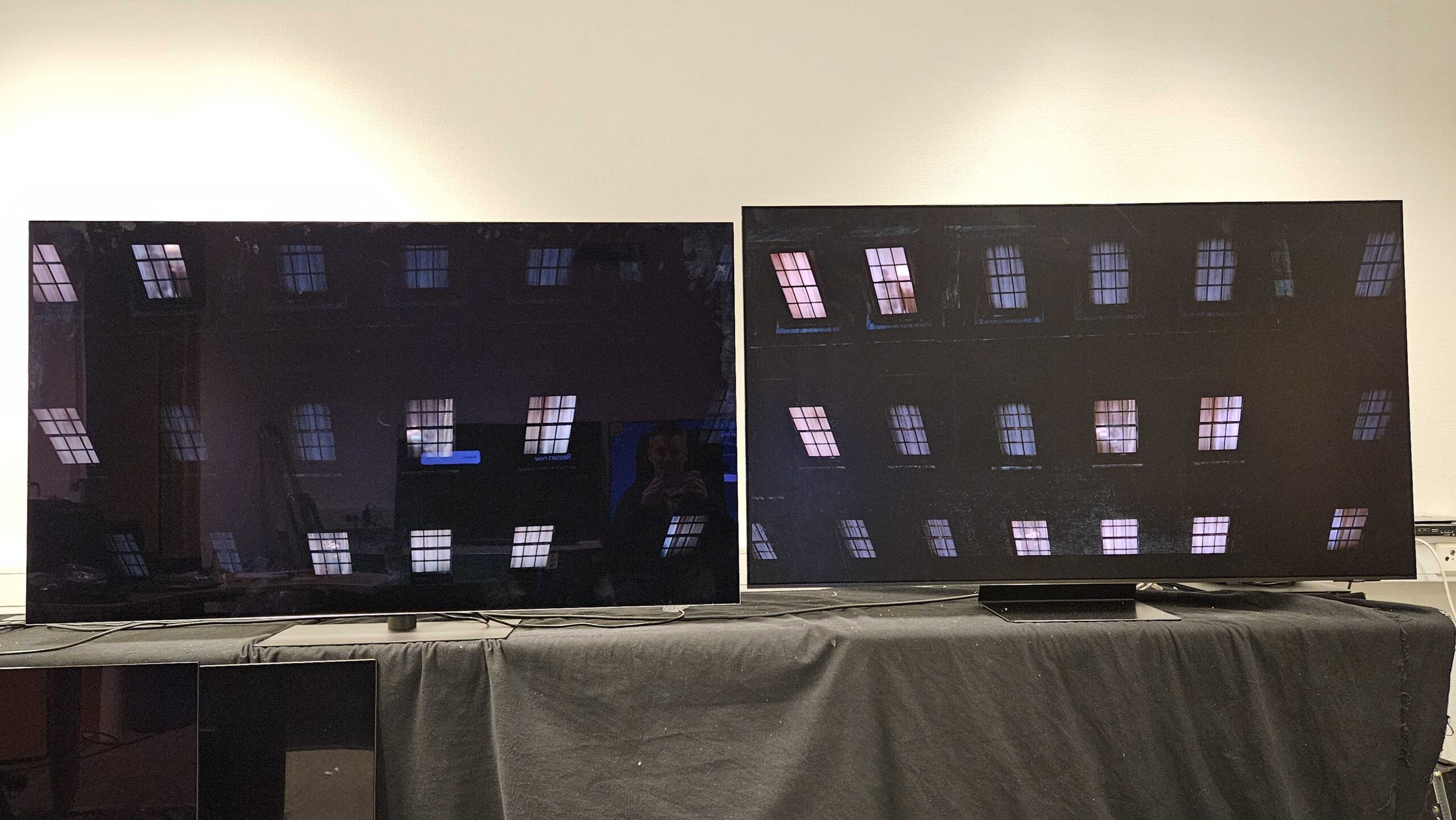 Samsung introduced OLED with a matte screen (called Glare Free) last year with the S95D, and this year they have managed to improve the formula slightly. The S95F with Glare Free 2.0 has become even better at reducing light reflections from the front and sides. At the same time, a dark black level with fewer grey tones is maintained. But the main difference is still the same, namely that the matte screen surface has a major practical impact on the viewing experience.