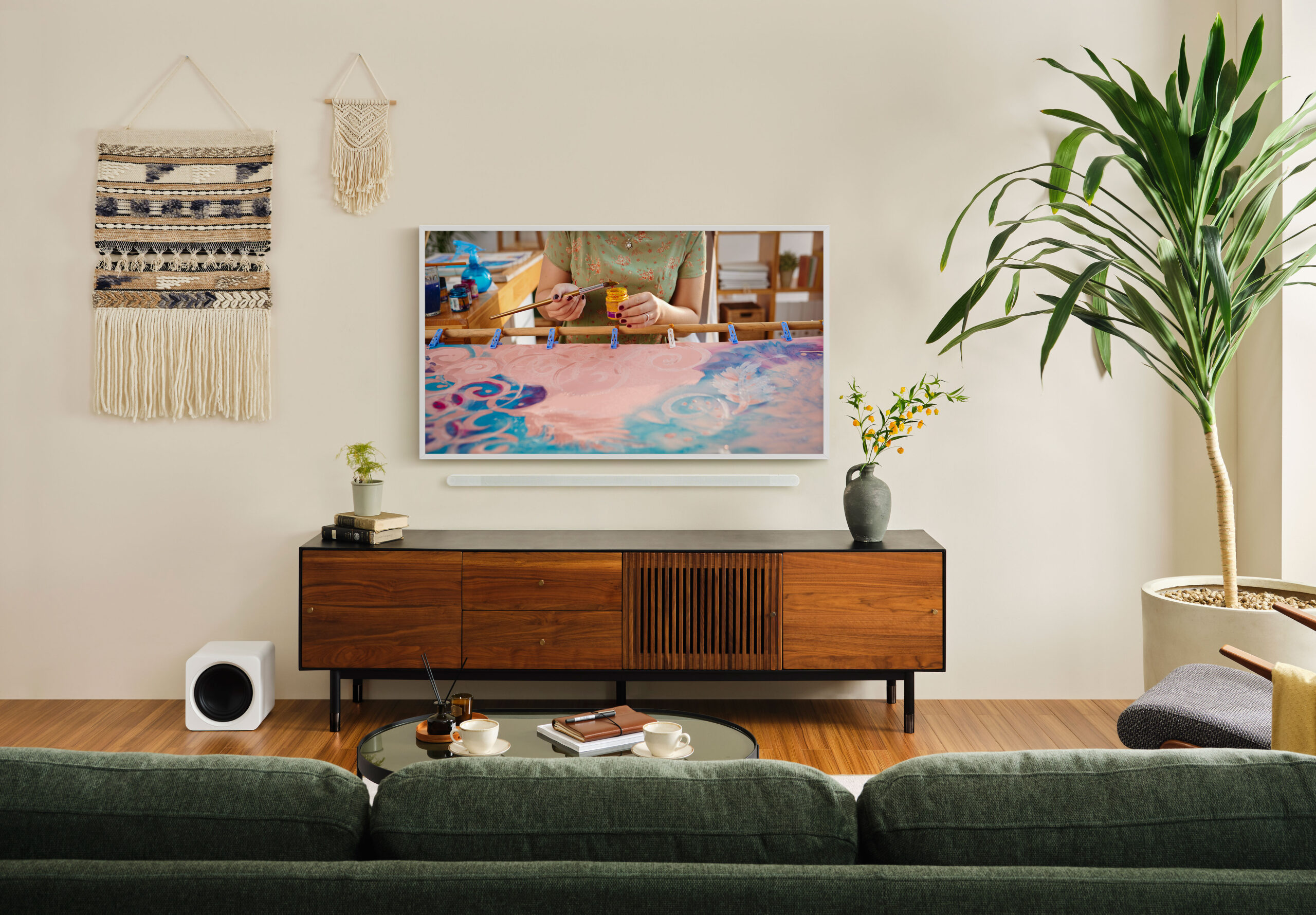 We’ve also tested many great soundbars from there and can recommend the compact S711D, available in black or white, as a good match for The Frame. This one also has the advantage of connecting wirelessly to the TV, which means you can ditch the HDMI cable – it just needs a power cord.