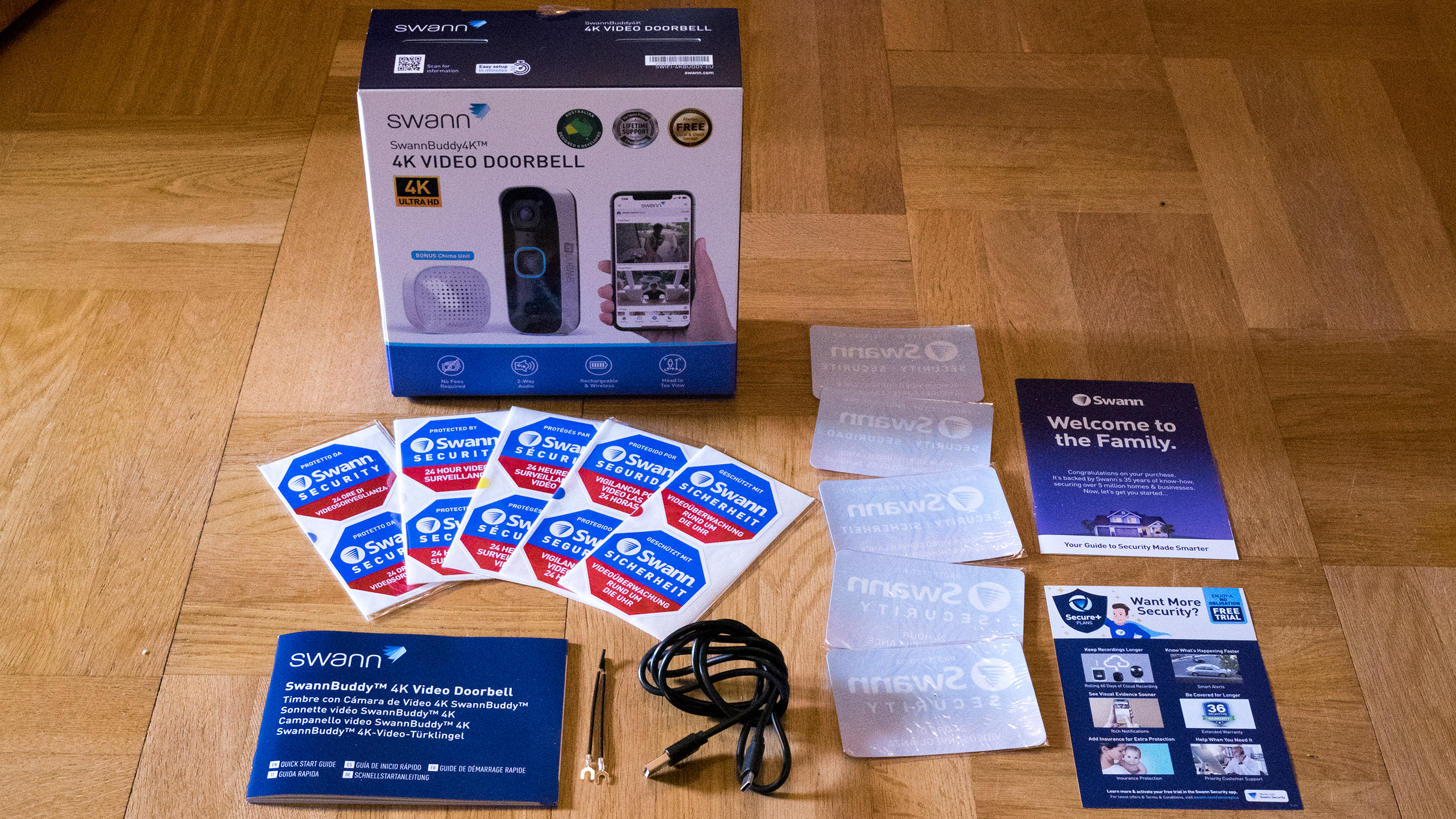SwannBuddy4K comes with most of the accessories you need, including a doorbell and a large number of security stickers – but no angled installation adapter if you want to mount the doorbell in a different way than straight out from the wall. As the camera is very wide angled, it is unlikely to be needed, and if it is, it is possible to buy as an accessory.