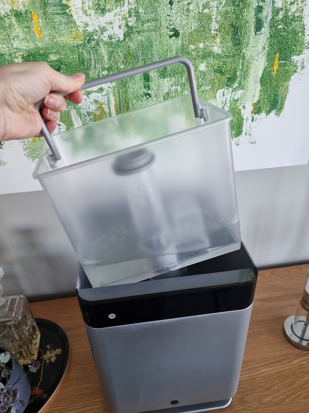 A humidifier is not a self-sustaining product, it requires some manual intervention. The manufacturer is clear when he informs me as a user that the water tank must be cleaned every three days. If you don’t do this, microorganisms can build up in the water, which are then discharged into the air. Fortunately, the humidifier is easy to clean. Just lift the lid, take out the water tank and wash it. It’s super easy!